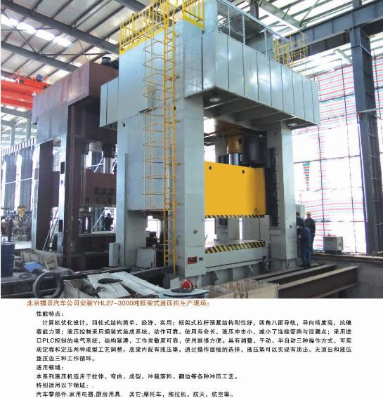 公司能夠為市場提供42大類500余個品種的標準液壓機和非標專用、精密伺服液壓機。產(chǎn)品廣泛應用于汽車、航天、粉末冶金、船舶、輕工、建筑、電子、家用電器等行業(yè),并代表著我國通用液壓機的發(fā)展水平。公司生產(chǎn)、設計、開發(fā)的液壓機產(chǎn)品完全能夠滿足國內不同用戶多層次的需要。